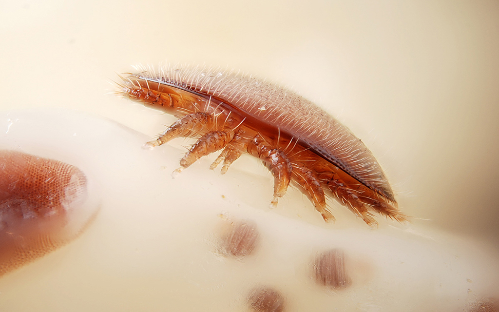 Позвоночная поверхность самки густо покрыта короткими, густо уложенными щетинками. Очень тонкое и элластичное соединение позвоночной поверхности и брюшной полости обсепечивает возможность значительно увеличивать объема тела, что необходимо в моменте взятия больших порций гемолимфы от кормильца и при продукции и созреванию яиц.