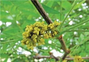 Цветки имеют зеленовато-желтый цвет, по мнению некоторых пахнут мёдом, собраны в грозди длиной до 4 см. На одних экземплярах дерева развиваются и мужские, и женские цветы, на других — исключительно мужские. Оба типа цветов в изобилии производят нектар.